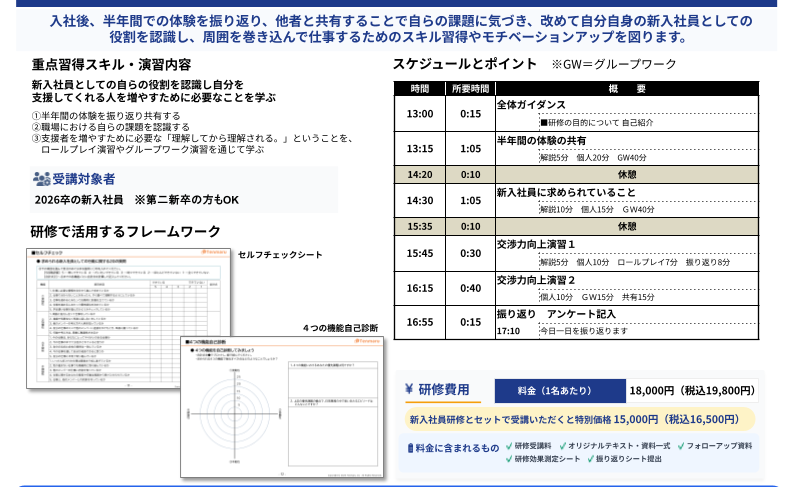 このプログラムは、入社から半年を迎えた新入社員を対象としています。
