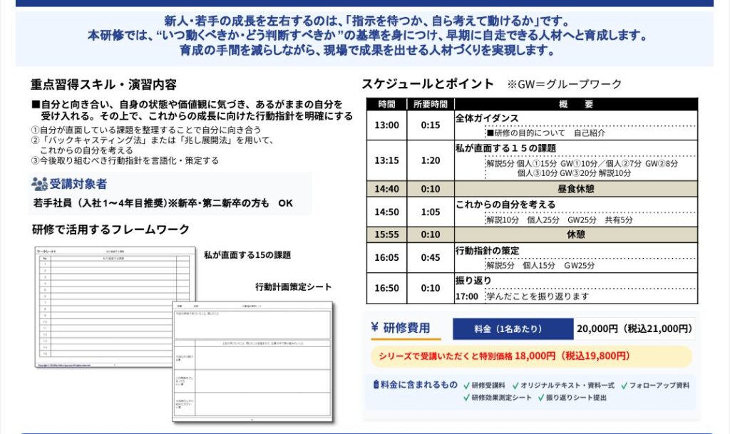 研修を”イベント”で終わらせず、現場での行動変容につなげたい方に、ぜひシリーズ受講をおすすめします。