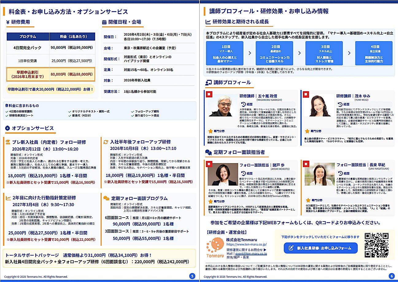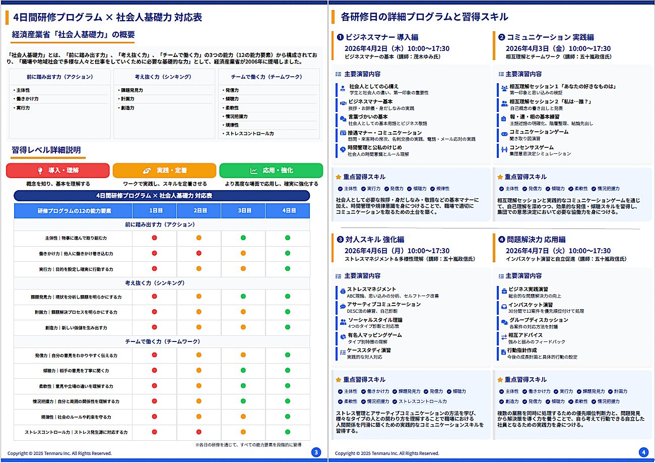 2026年度新⼊社員を対象とした4⽇間完全プログラムです。
