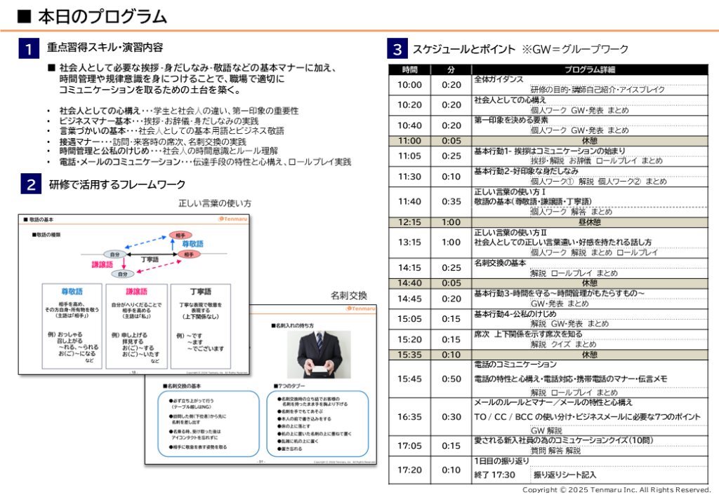 26卒新入社員研修対人スキルタイムテーブル